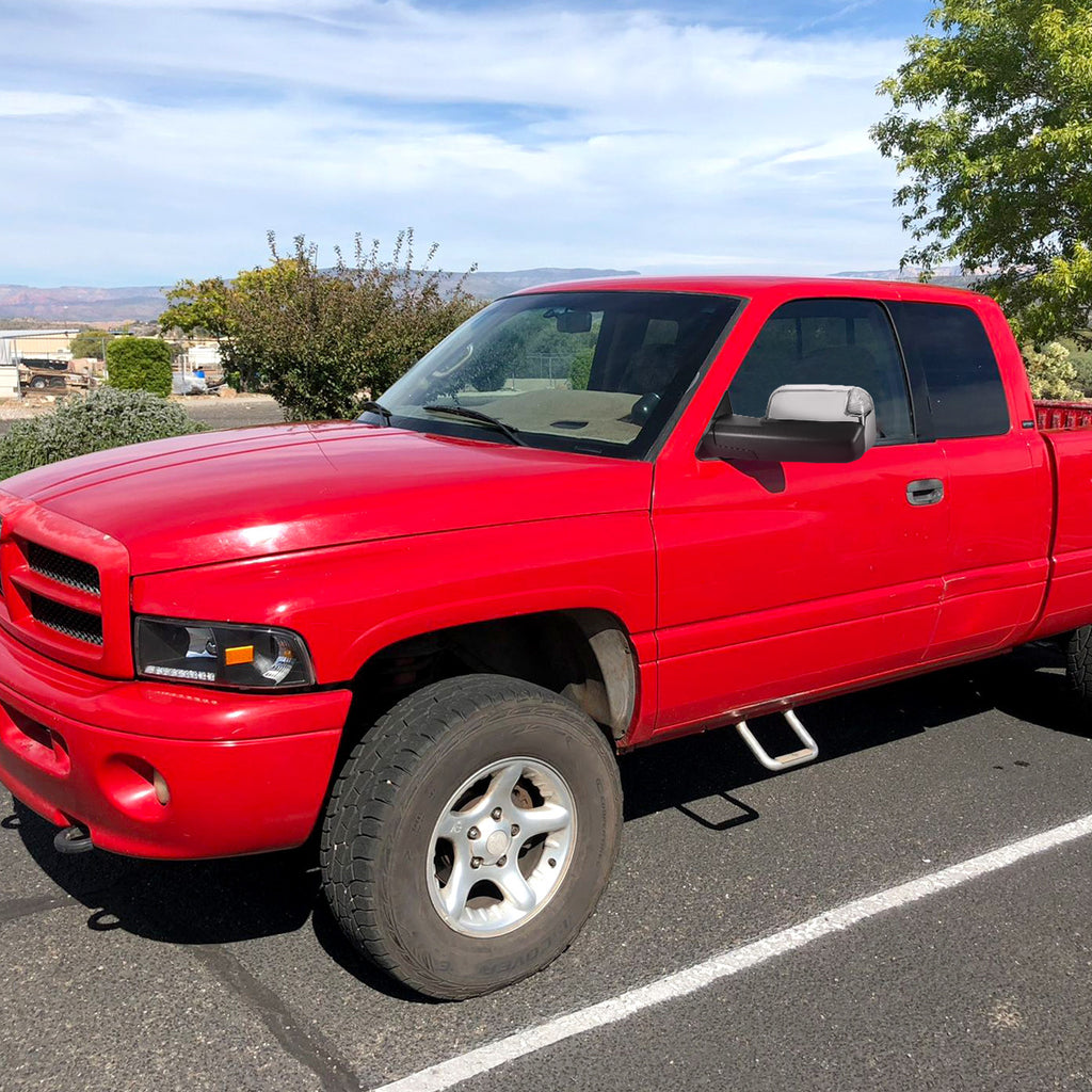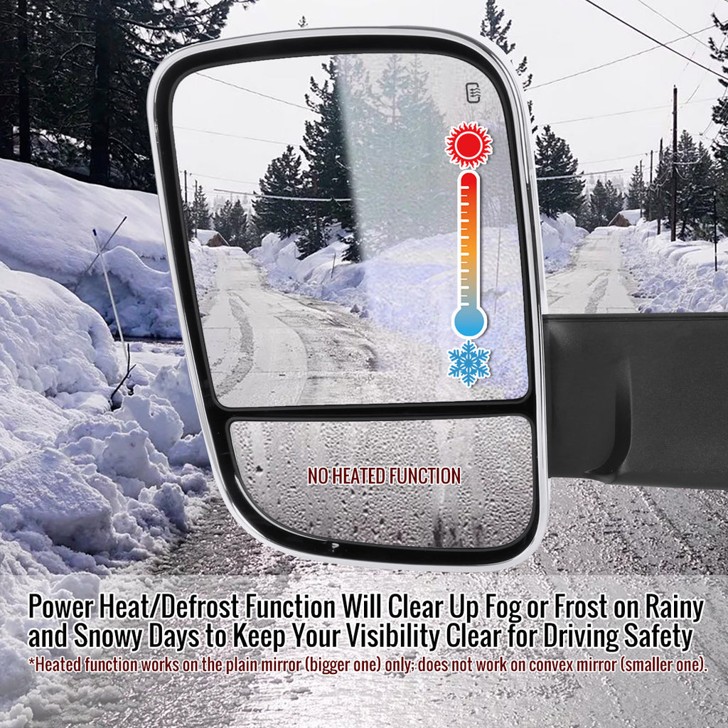 - Comes with (1) of driver and passenger side power adjustable towing mirrors with manual telescoping function and amber lens LED turn signal lights for improved visibility