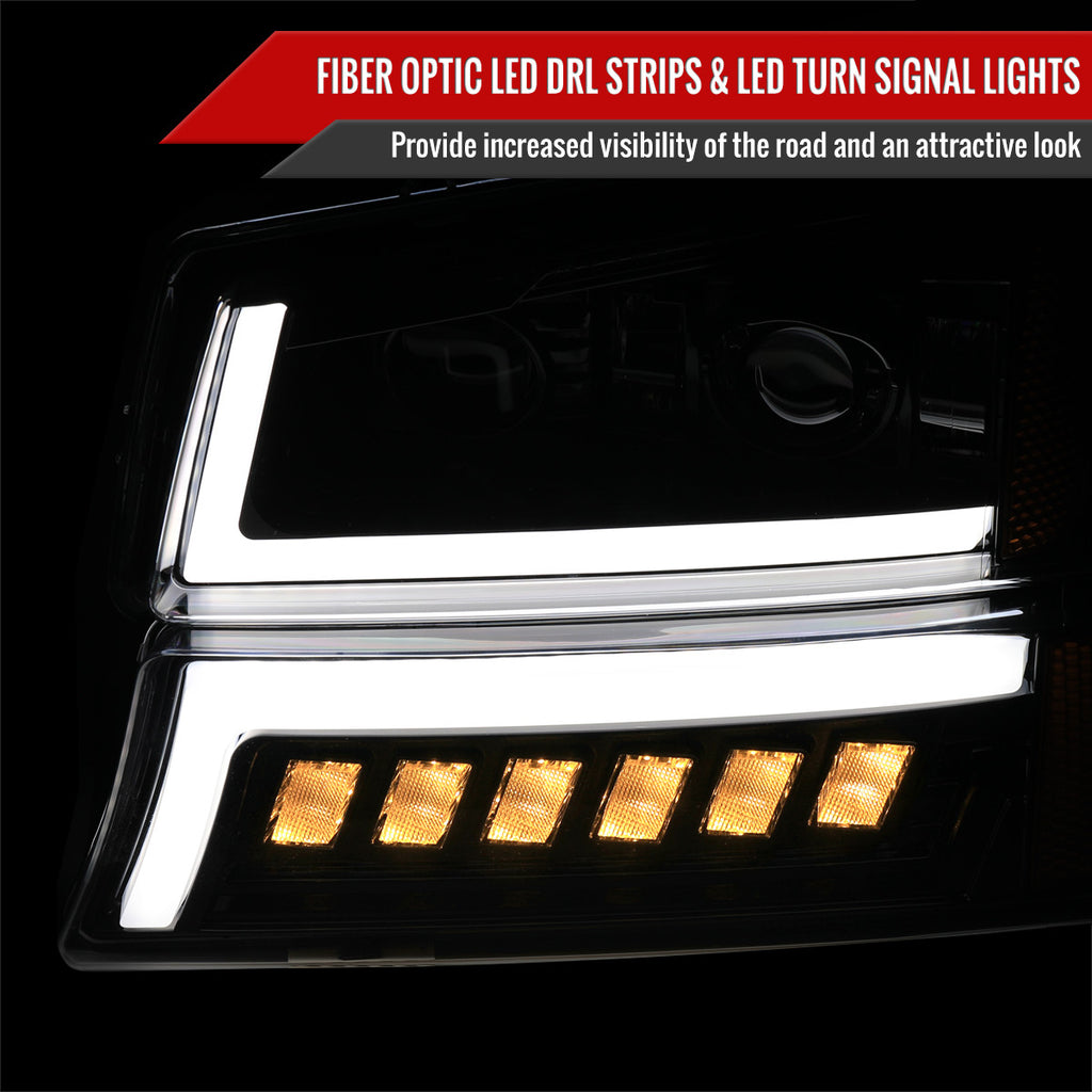 - Comes with (1) pair of jet black housing, clear lens LED projector headlights with amber reflector & bumper lights