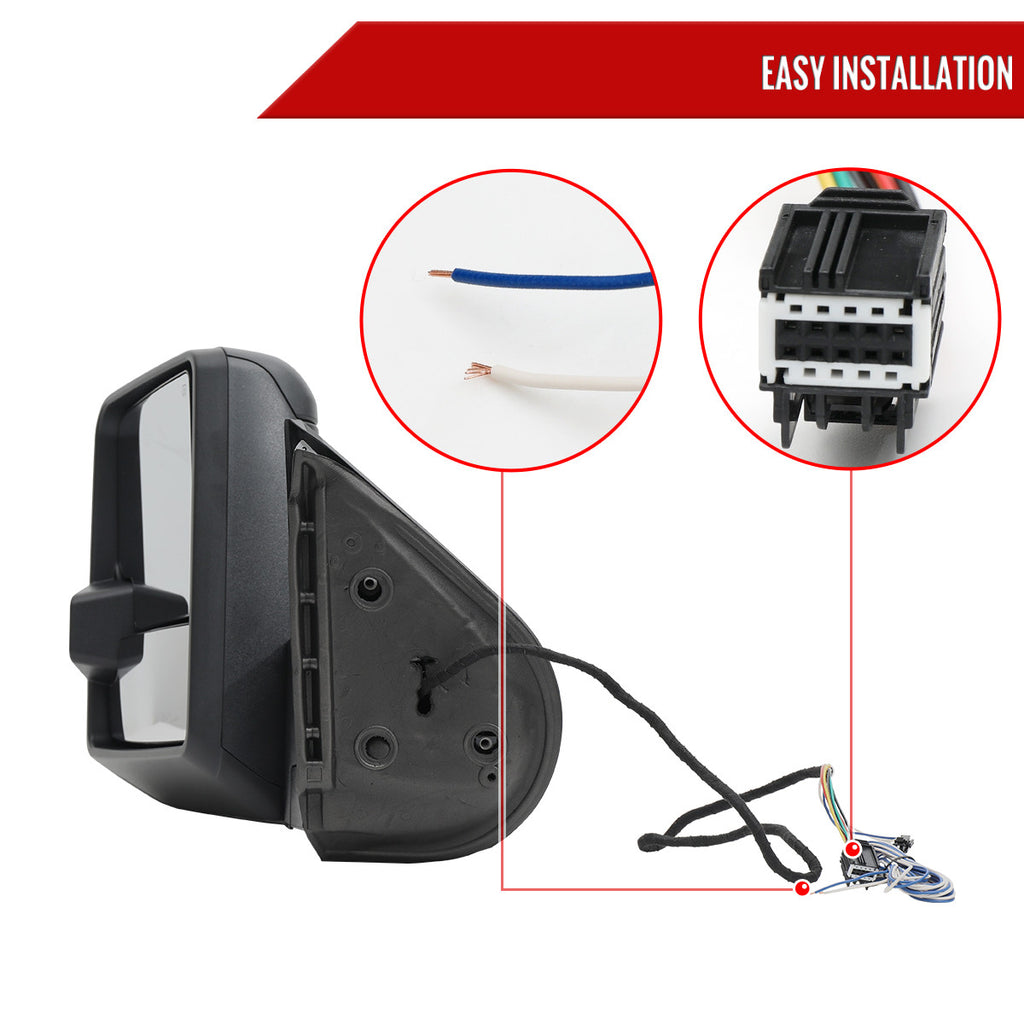 - Comes with (1) pair of power adjustable driver and passenger side tow mirrors