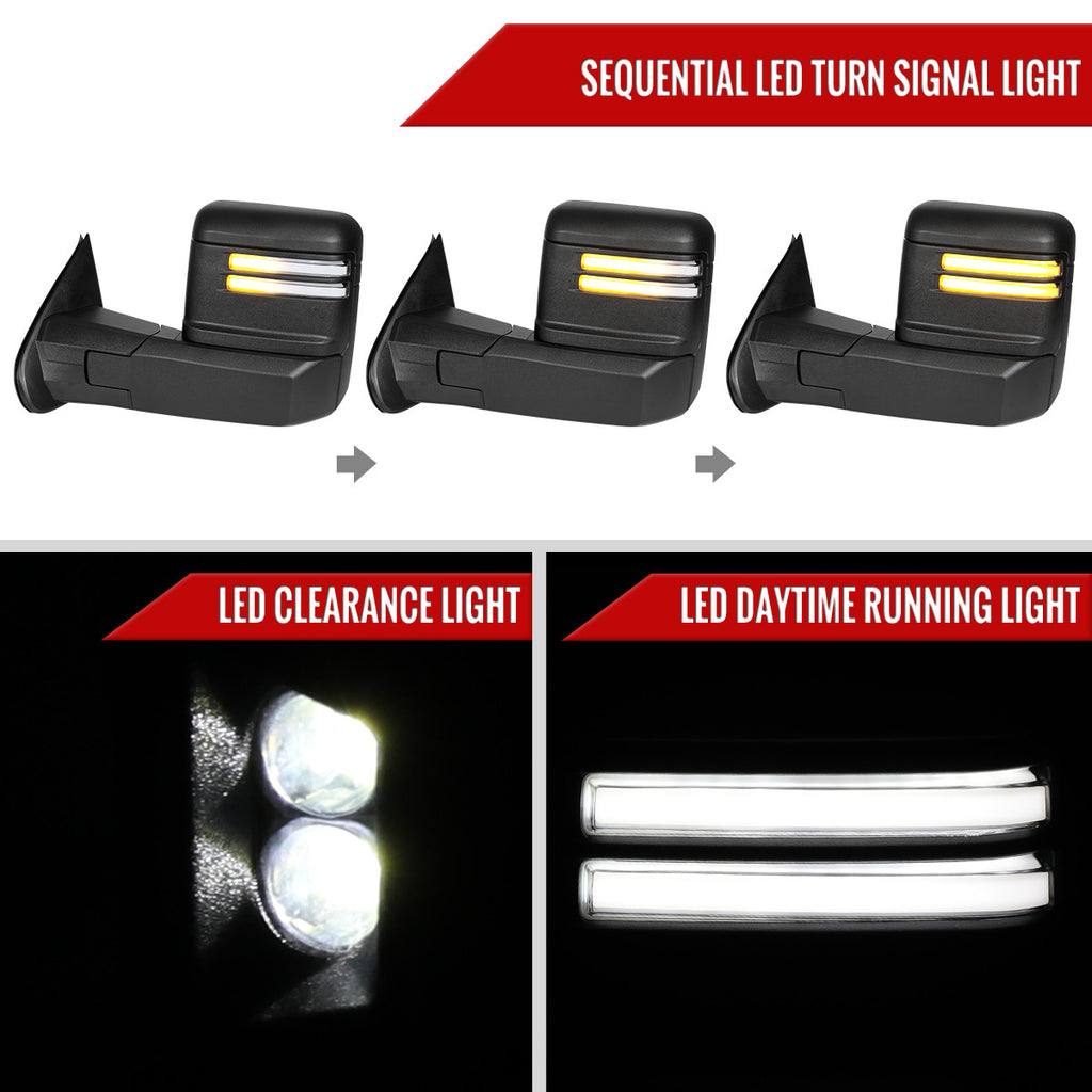 - Comes with (1) pair of power adjustable driver and passenger side tow mirrors
